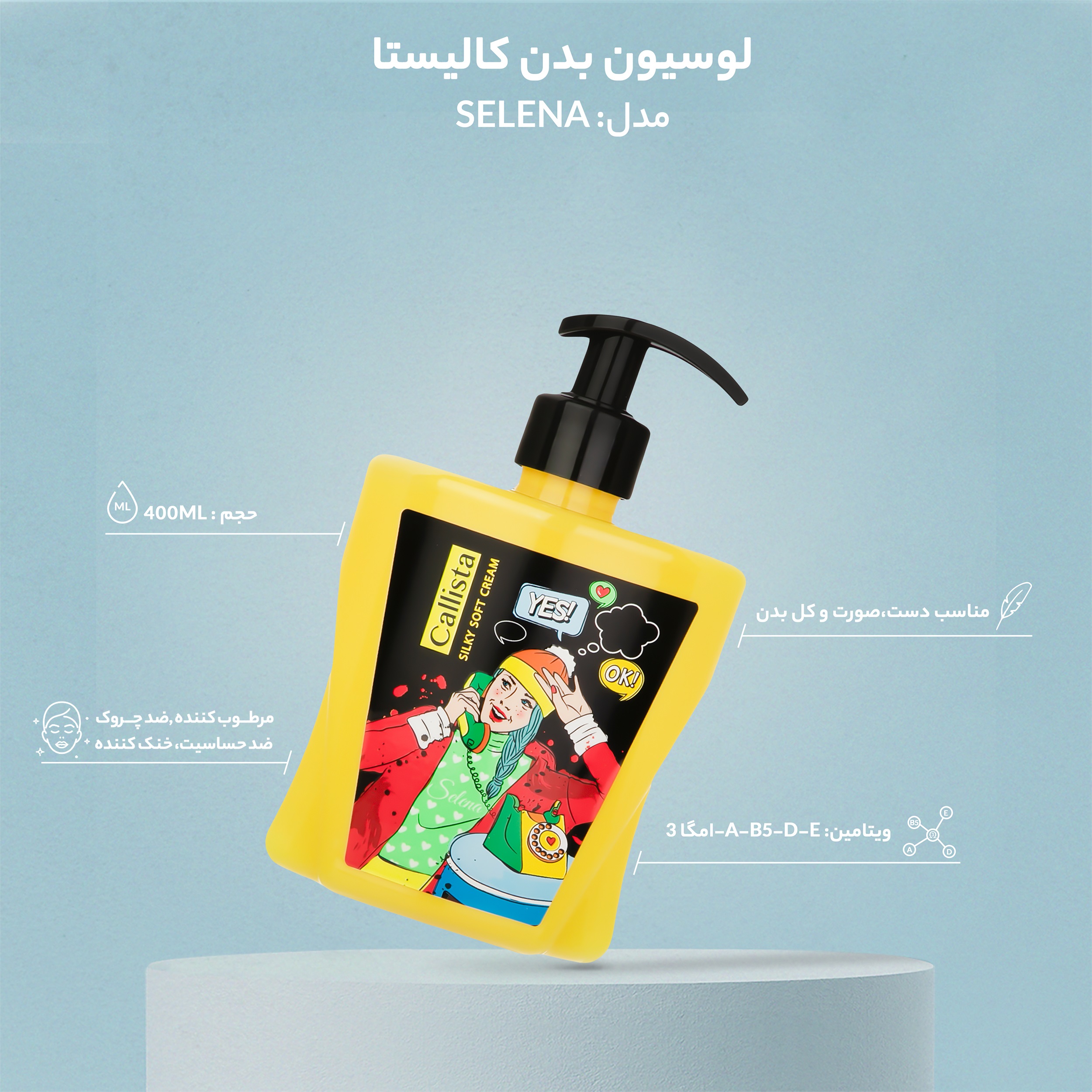 لوسیون بدن کالیستا مدل SELENA حجم 400 میلی لیتر