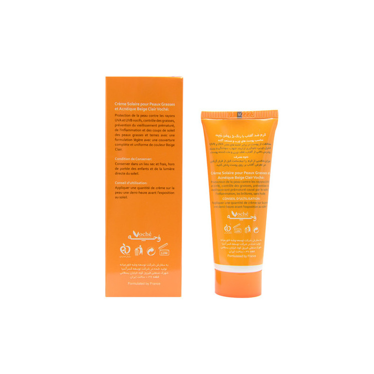 کرم ضد آفتاب رنگی NATURAL (بژ طبیعی) وچه مدل SPF50 مناسب پوستهای چرب حجم 40 میلی لیتر