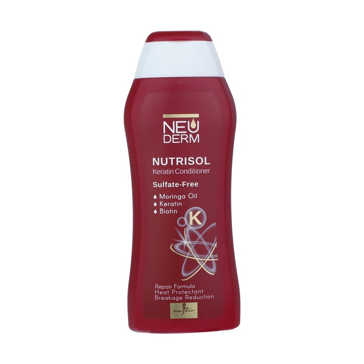 نرم کننده موی کراتینه فاقد سولفات نوتریسل نئودرم حاوی کراتین، روغن مورینگا، بیوتین، پروتئین سویا و پروبیوتیک است. این محصول با تغذیه و آبرسانی عمیق موها، لطافتبخش و بازکننده گره آنها بوده و حالت فر و وزی موها را از بین میبرد و موجب نرمی، لختی، براقی و درخشندگی آنها میشود. نرم کننده کراتینه نئودرم مناسب برای موهای وز، فر، خشک، آسیب دیده و افرادی که موهای خود را به وسیله کراتینه کردن، صاف کردهاند است. کراتین پروتئینی است که به تقویت مو برای جلوگیری از شکستگی، آسیب گرما و وز شدن کمک میکند. این ماده علاوه بر ترمیم کنندگی موها را در برابر آسیبهای محیطی حفظ میکند. بیوتین برای حفظ بافت و قدرت ریشه موها مناسب است. این ماده علاوه بر کمک به رشد مجدد مو، موجب افزایش ضخامت، درخشندگی و کیفیت موها میشود. روغن مورینگا موجود در نرم کننده کراتینه فاقد سولفات نئودرم، سرشار از ماده معدنی روی است که به تولید کراتین و در نهایت، تقویت موها کمک شایانی میکند. این روغن ارزشمند علاوه بر خاصیت ضد التهابی، دارای خواص محافظتی و مرطوبکنندگی قوی است. پروتئین سویا به بهبود بافت مو، تقویت و ترمیم موهای آسیب دیده کمک میکند و موجب میشود موها مرطوب، براق و سالم باشند. ویتامین B نقش مهمی در حفظ سلامتی و رشد موها دارد و با جلوگیری از آسیبهای ناشی از رادیکالهای آزاد، به بهبود سلامت آن کمک میکند. پروبیوتیکها همانند واکسن، سیستم ایمنى سلولى را فعال کرده و ضمن تولید مواد ضد التهابى، با حفظ اسیدیته پوست و مو به بهبود وضعیت آنها کمک میکند.