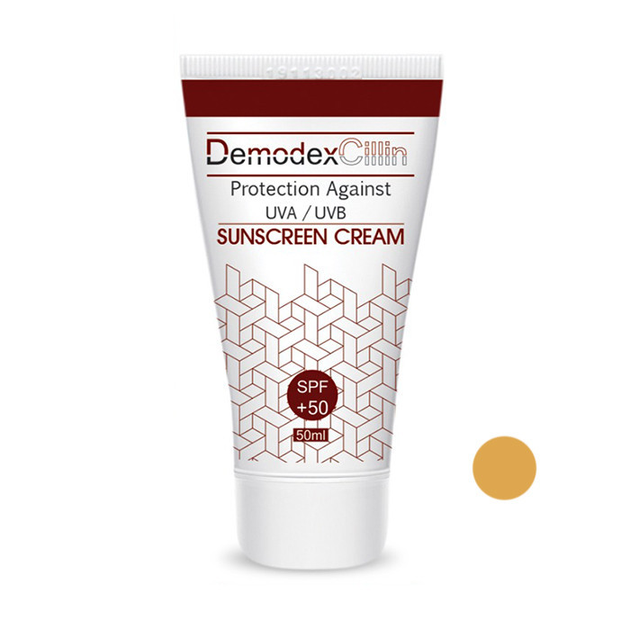 کرم ضد آفتاب رنگی (رز بژ) دمودکسیلین یک ضد آفتاب با جذب سریع جهت کمک به کاهش تراکم دمودکس انواع پوست است. این کرم از پوست در برابر پرتو UV Aو UV B محافظت کرده و برای پوستهای حساس و مستعد جوش نیز مناسب است. کرم ضد آفتاب رنگی دمودکسیلین دارای عصاره آلوئه ورا و روغن درخت چای است و مواد موثره و پایه این کرم ضد آفتاب به گونهای طراحی شده است که امکان تغذیه انگلها در آن میسر نیست.