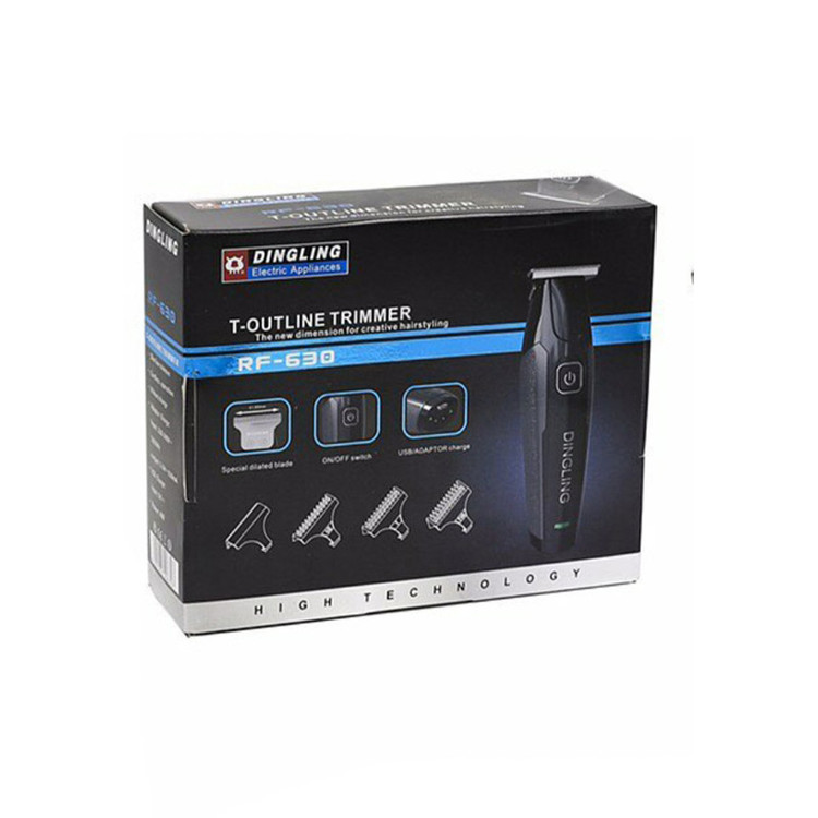 ماشین اصلاح «دینگ لینگ» مدل «RF-630» دستگاهی برای اصلاح موهای صورت و بدن است. تیغه این دستگاه استیل است . تیغه ماشین اصلاح پایین ترین حالت کوتاهی یعنی 0.2 میلی متر را دارد . فاصلهی بین این دو تیغه، طول اصلاح را تعیین میکند. طول اصلاح تیغه ثابت و برابر 0.2 میلیمتر است. عرض تیغهی دستگاه 44 میلیمتر و وزن آن 180 گرم است. برای اینکه بتوان موهای سر و صورت را در اندازههای بیشتر از 0.2 میلیمتر کوتاه کرد، میتوان از دو شانه ی ارائهشده همراه دستگاه استفاده کرد. دارای 3عدد شانه به شماره های 1-2-3 است. دارای باتری لیتیوم که مدتزمان شارژ کامل باتری 480 دقیقه و زمان شارژدهی استفاده از دستگاه 60 دقیقه است. برای افزایش عمر تیغهها بهتر است پس از هر بار استفاده، خردههای مو را توسط برس تمیز کرده و توسط روغن موجود در جعبه، تیغهها را روغنکاری کنید. بهطور خلاصه ریشتراش Dingling RF-630 دارای تیغهی تریمر باعرض 44 میلیمتر، طول اصلاح 0.2 میلیمتر، باتری لیتیوم قابلشارژ است. این دستگاه برای اصلاح موهای صورت و بدن مناسب است