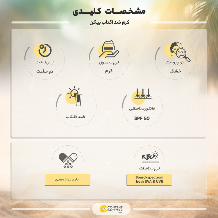 کرم ضد آفتاب رنگی بیکن مدل 2 مناسب پوست های خشک حجم 50 میلی لیتر