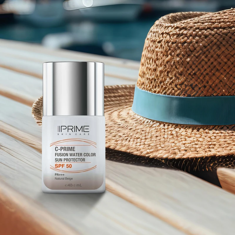 فلوئید ضد آفتاب رنگی پرایم، SPF 50، مدل فیوژن واتر، مناسب انواع پوست با تنالیته متوسط و حجم 40 میلی لیتر، محافظت‌کننده در برابر اشعه‌های PA++++ ،UVA ،UVB، دارای فرمولاسیون فاقد چربی، ویتامین سی و آنتی اکسیدان، با ماندگاری 4 ساعته