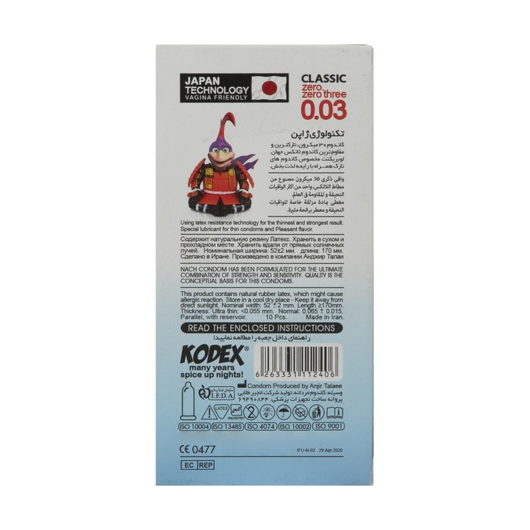 ویژگی محصولات بهداشت جنسی: کلاسیک و ساده , ضد حساسیت